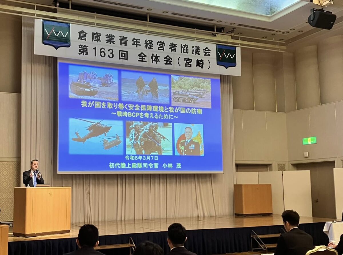 講演会および、パネルディスカッション テーマ「世界情勢を踏まえた戦時BCP 対策について」講師 元初代陸上総隊司令官 小林 茂 様、白石倉庫 代表取締役社長 太宰 榮一様