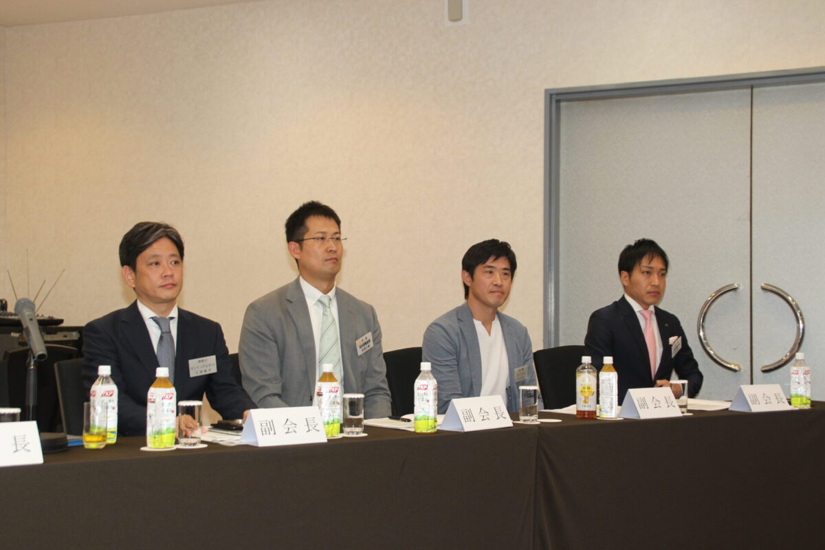本総会をもって小山会長から谷川新会長へと会長のバトンが渡り、 <「倉意工夫」 やってみなはれ 価値創造!!> という新スローガンのもと、フレッシュな新体制が披露された。