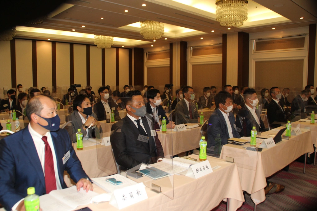 15時15分から、久保田賢二常任幹事(センコン物流株式会社)の司会により、第49回総会が開催された。会員68名出席のほか、オンラインでの参加もあった。総会では、令和2年度事業報告および決算報告の後、野口会長から富永新会長へ引き継ぎが行われた。