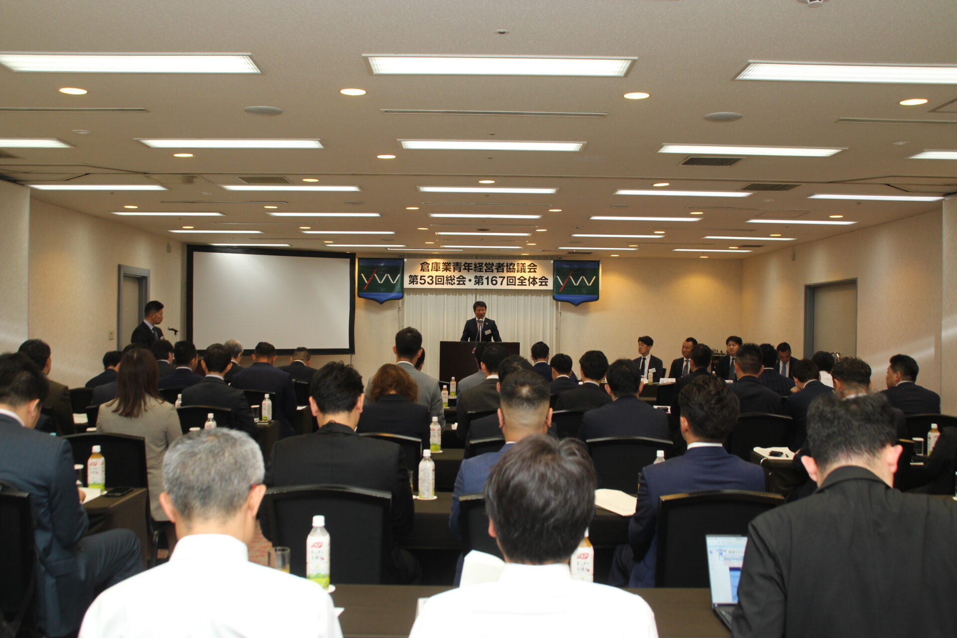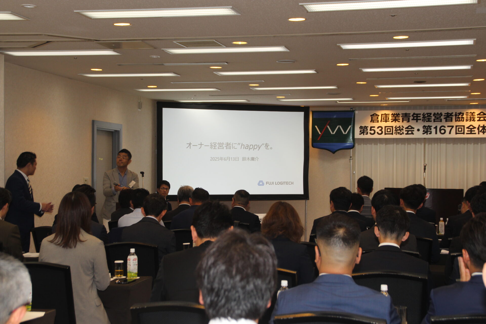 2025(令和7)年6月13日(金)アジュール竹芝(東京都港区)にて、倉青協常任幹事会、第53回総会・第167回全体会、講演会が開催されました。この総会をもって小山会長から谷川新会長へと会長のバトンが渡され、谷川新会長は <「倉意工夫」 やってみなはれ 価値創造!!> という新スローガンとフレッシュな新体制を披露しました。また、富士ロジテックホールディングス 鈴木社長による講演は、まさに倉青協でしか聴けない貴重な話でした。