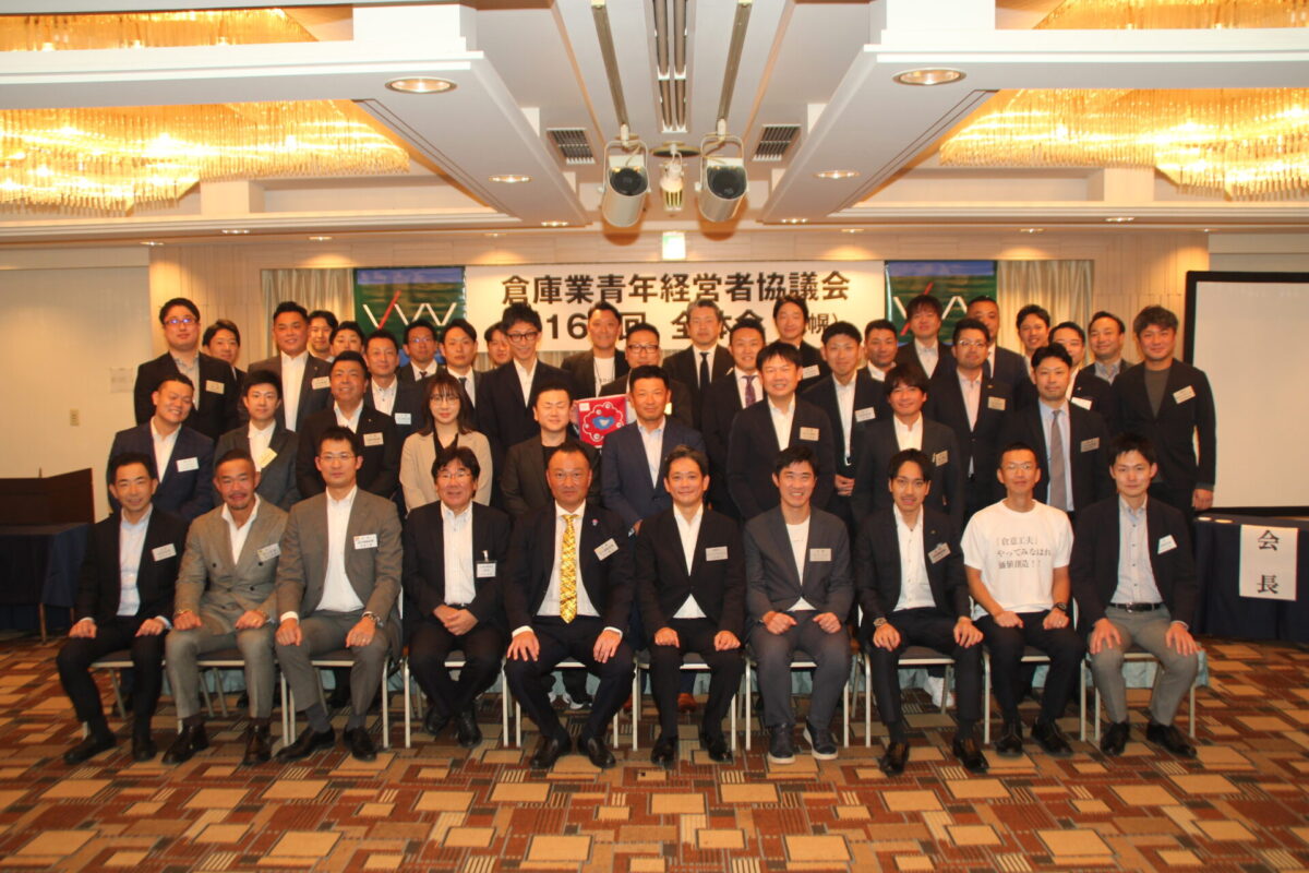 第168回全体会は、阿部一皓運営委員長(フコク)の司会進行のもと、はじめに谷川隆史会長(谷川運輸倉庫)が「私が19年前に倉青協に入会して、初めて参加した全体会が札幌でした。当時出会った仲間たちとは、今も親密な関係を築いています。倉青協は参加してこそ価値が生まれる場です。皆さんも気の合う仲間を見つけてどんどん交流を深めてください」とあいさつしました。