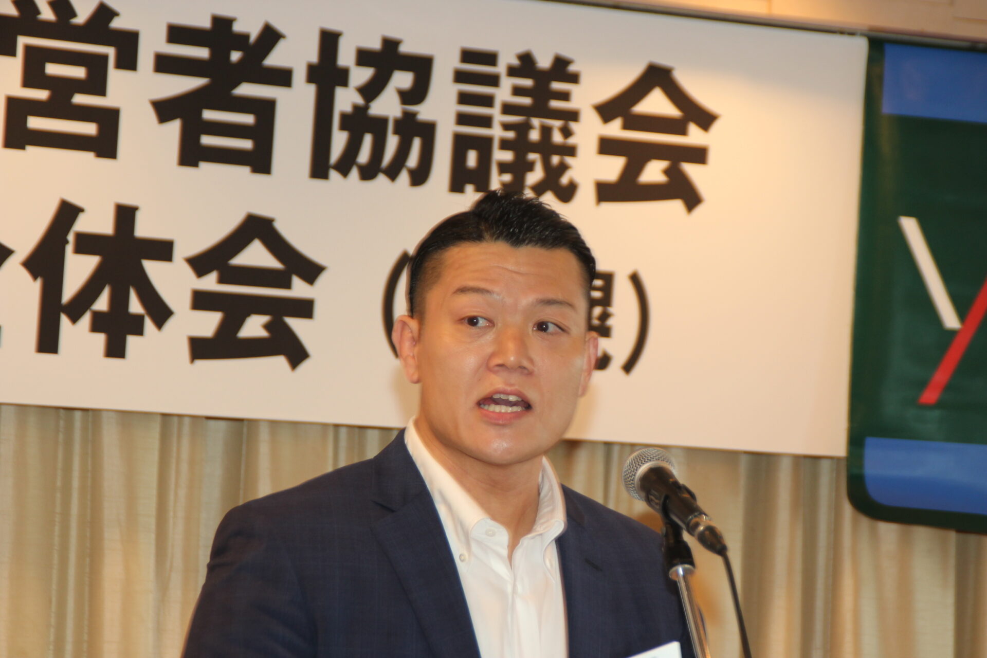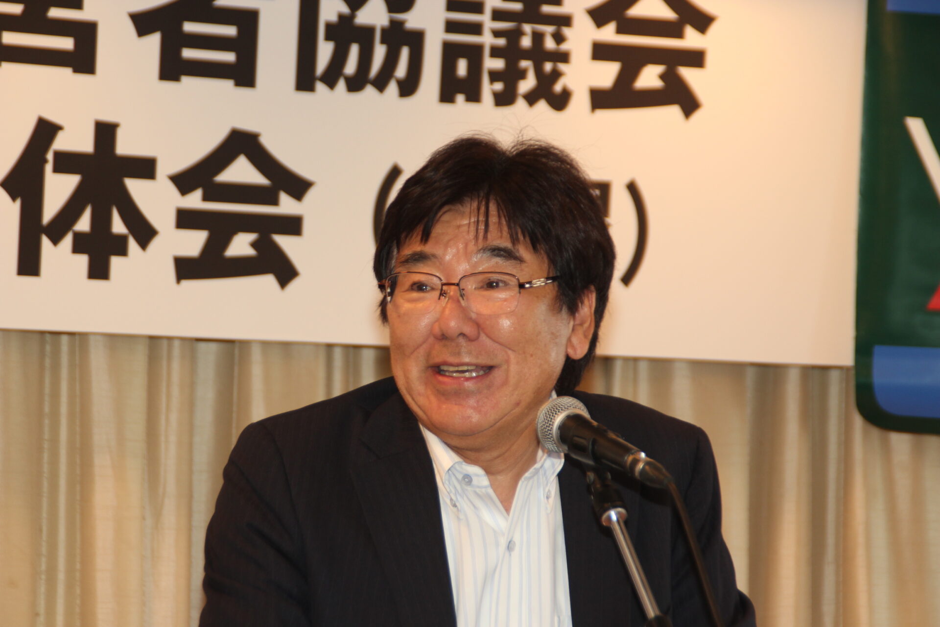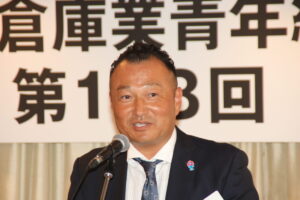 来賓には、一般社団法人日本倉庫協会 理事長の米田浩氏、同 業務部の飯島祐太氏を迎えました。来賓を代表して米田理事長が登壇し、倉庫業に関わる最近の行政関係の動きなどを紹介しました。